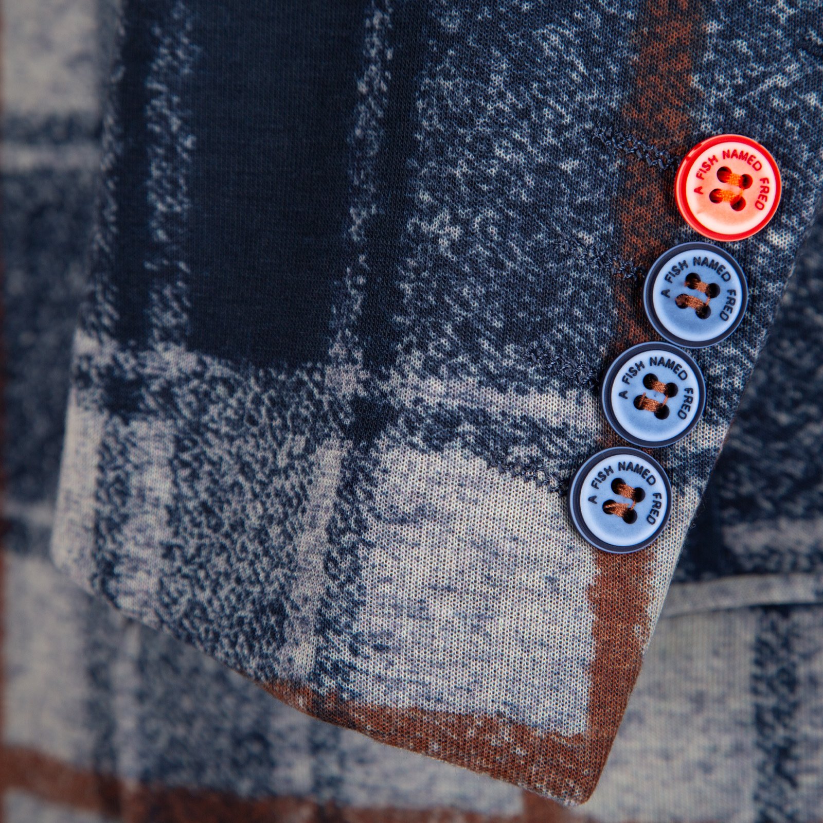 Full of little details and clever trims, this colourful stretch knit blazer is a fun piece that is so versatile. Features colourful print lining, with internal pockets, a secret pocket square, a fish hook lapel pin and feature contrast button detail. For a distinctive suit, wear it with matchingBold Check Stretch Knit Trousers.