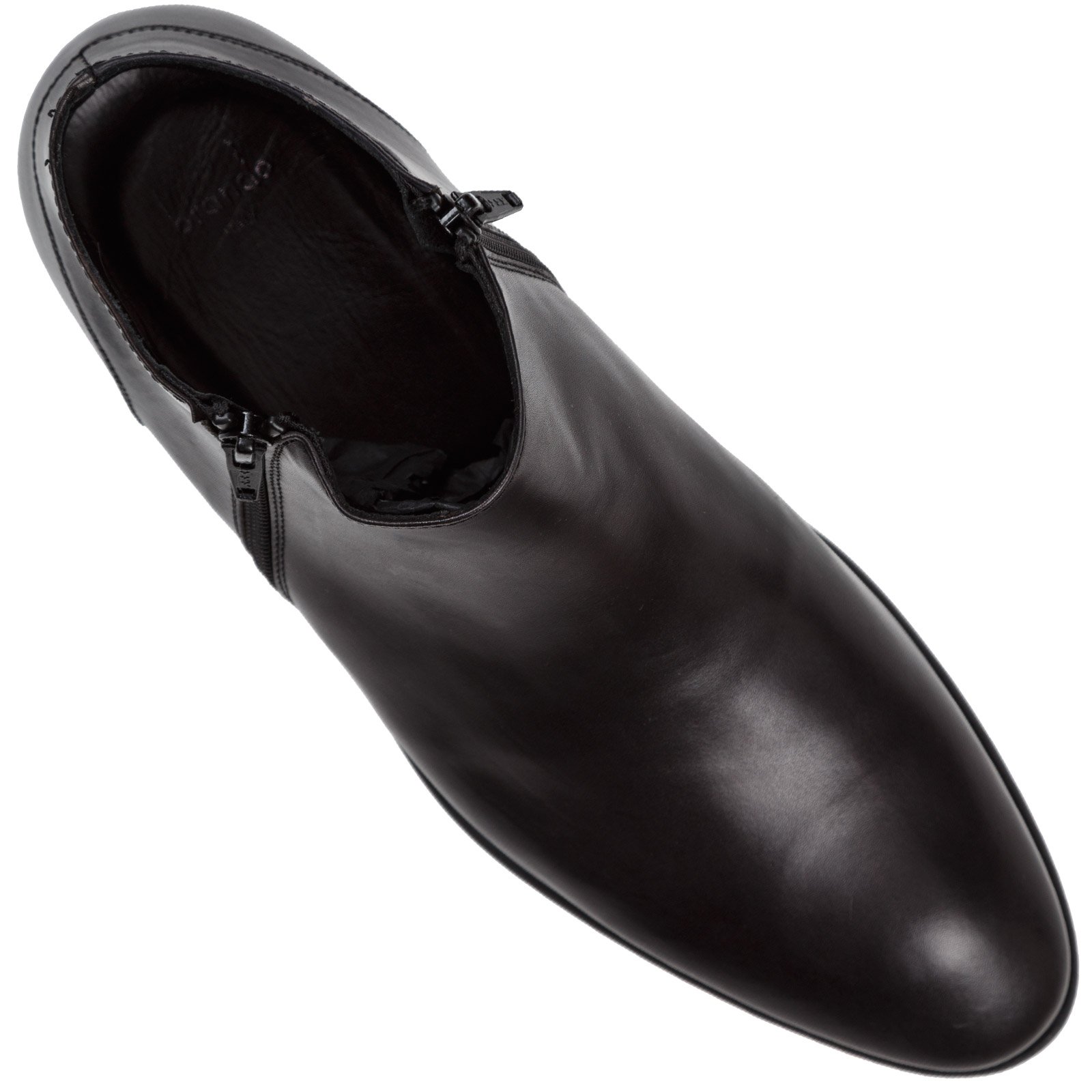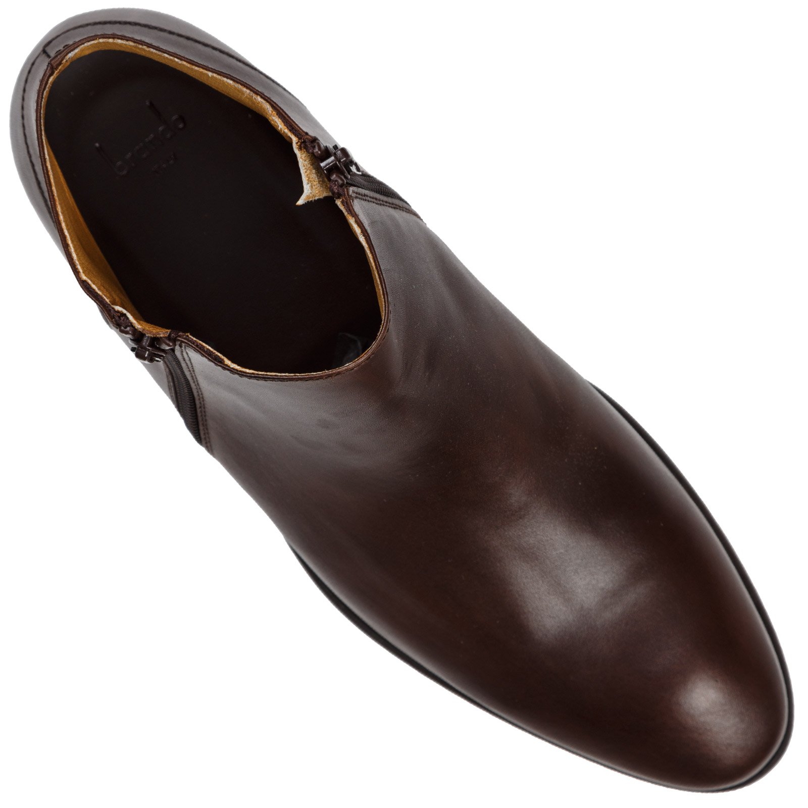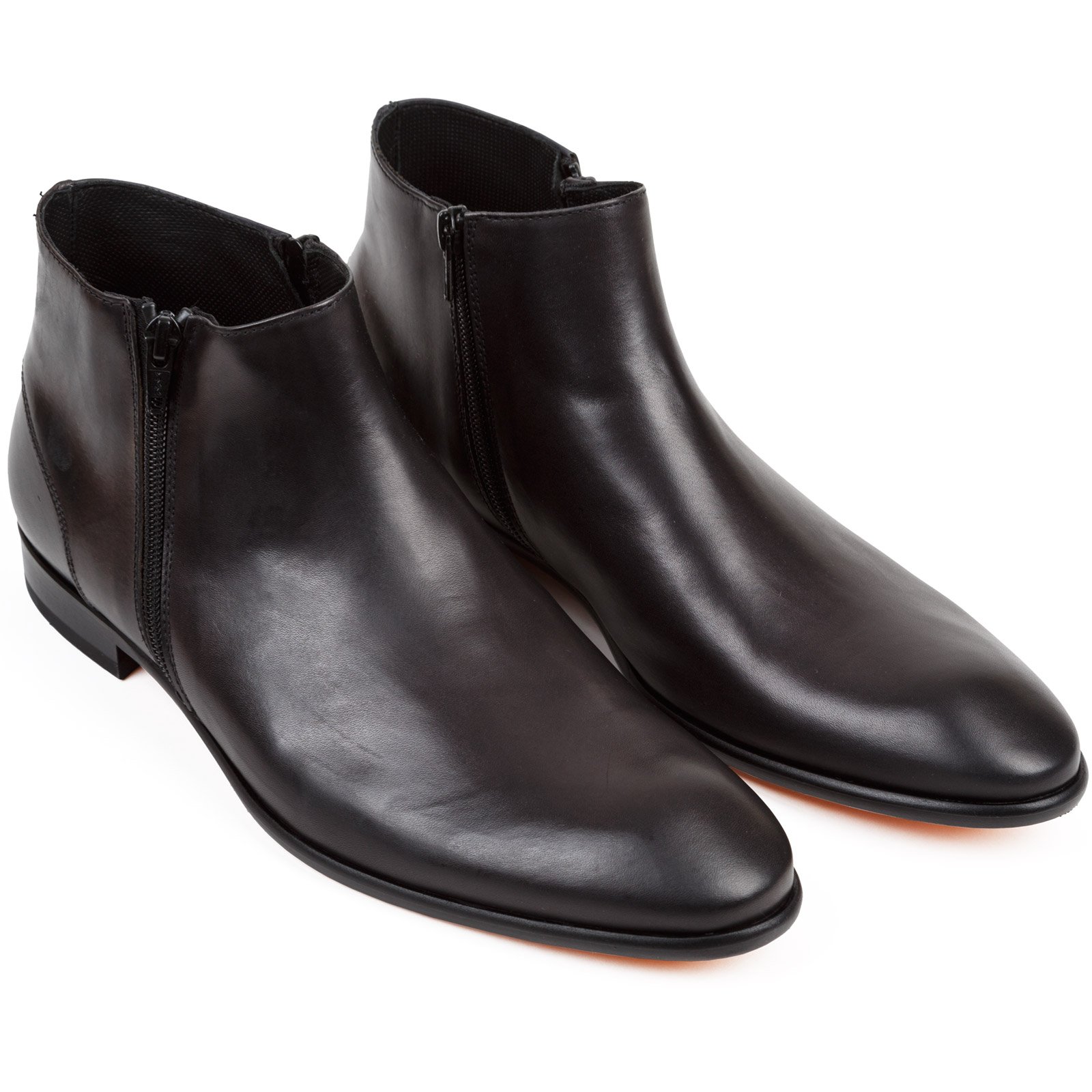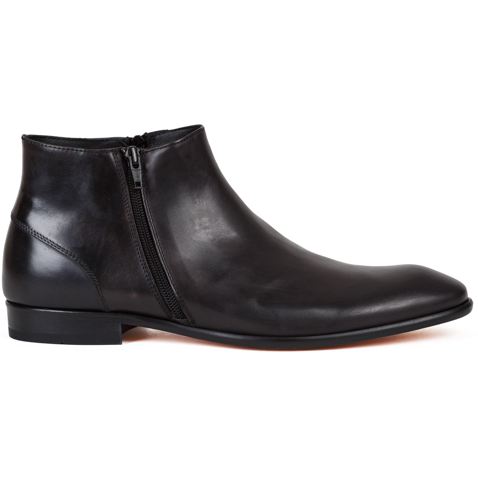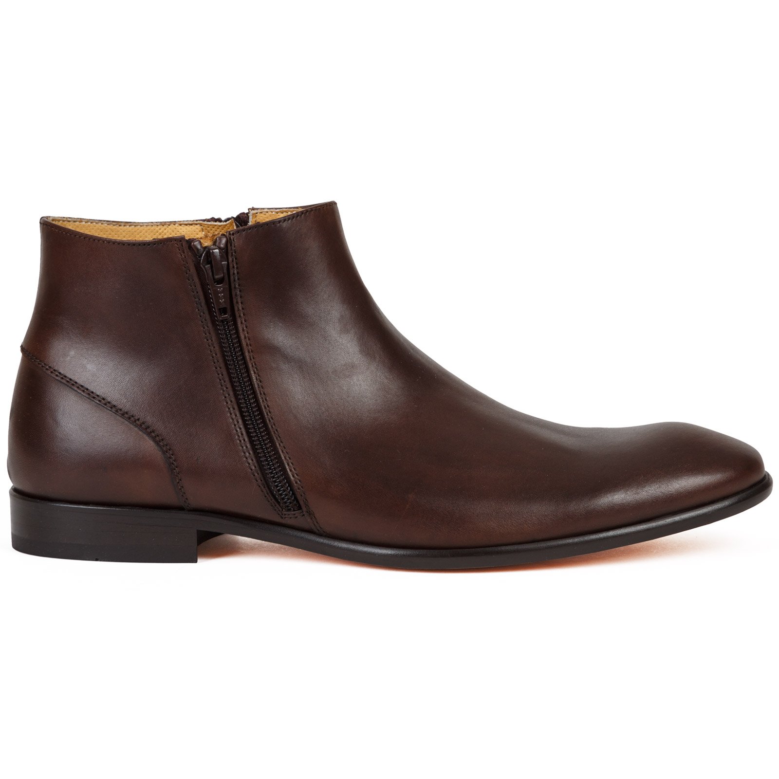 These antique finish matt leather low ankle boots feature double zips for ease and comfort, a modern wide fit round toe shape and stitched leather soles. Versatile enough to take you from the boardroom with a suit to an evening out worn with jeans and a blazer.