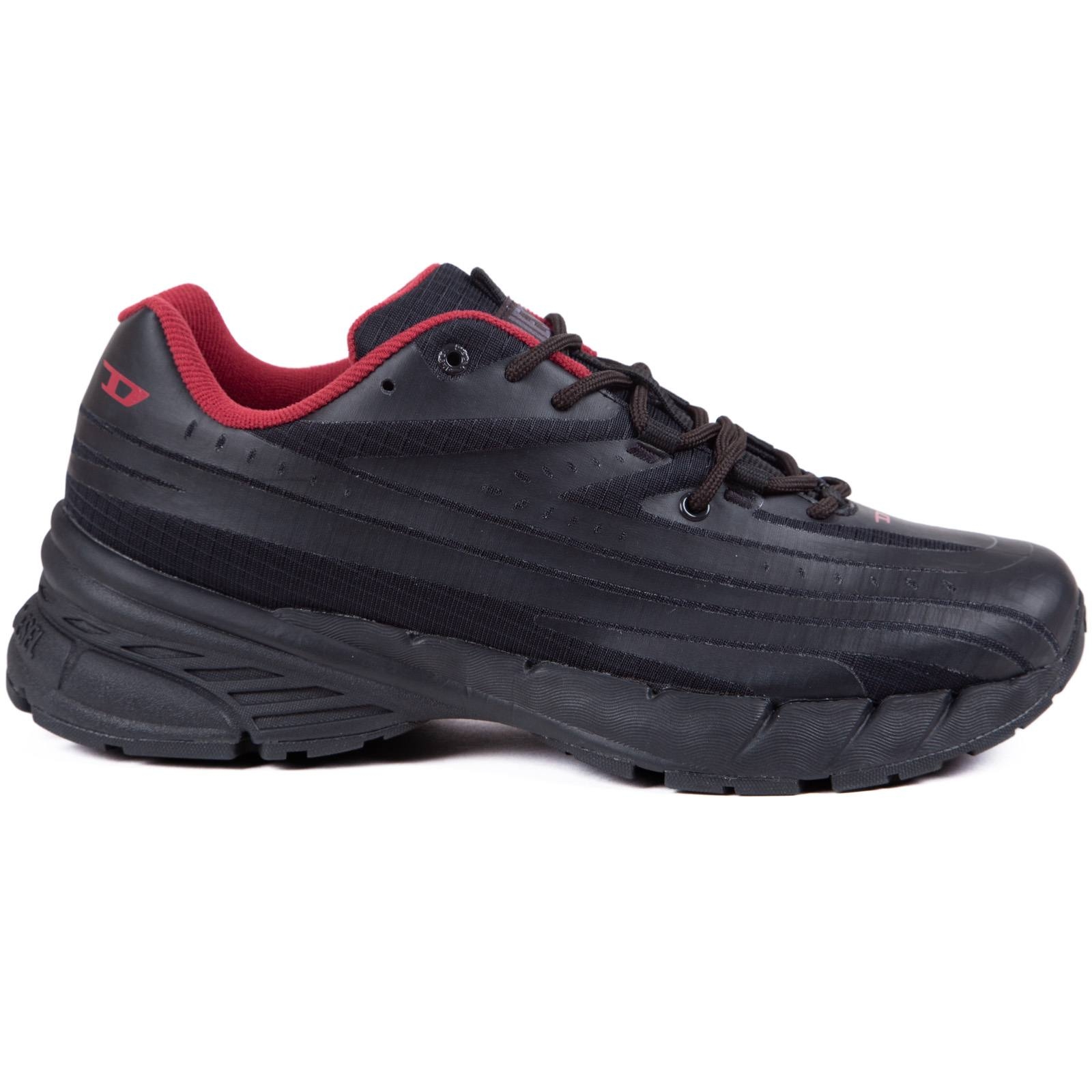 These new sneakers with slightly squared-off toes and lace-up closure. A graphic reimagining of a running silhouette, these sporty shoes are built from durable ripstop coated with matte PU in sweeping front-to-back lines. The striped design is seamlessly incorporated into the sole, sealing the dynamic, streamlined look. Wear them with jeans or shorts and a colourful T-shirt.