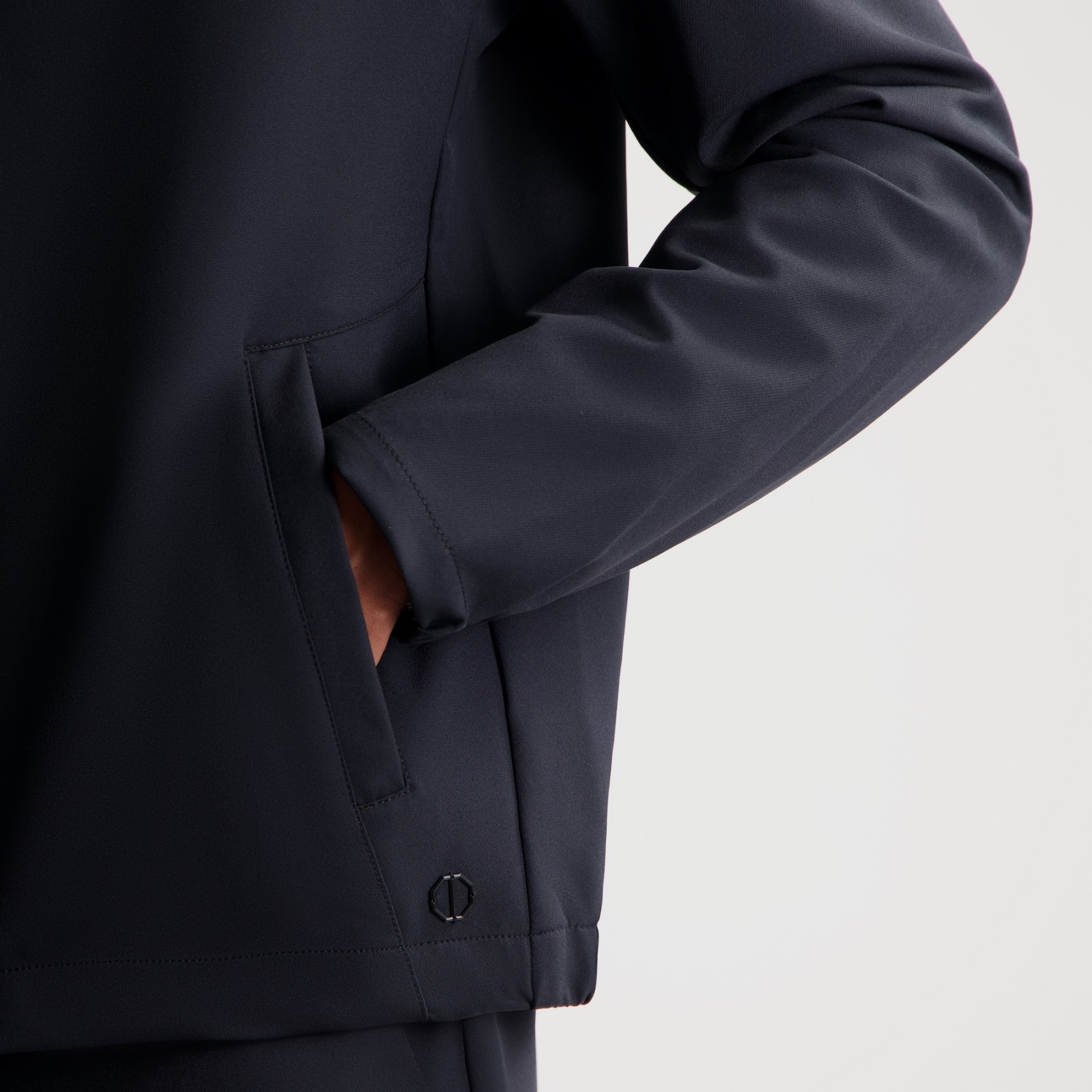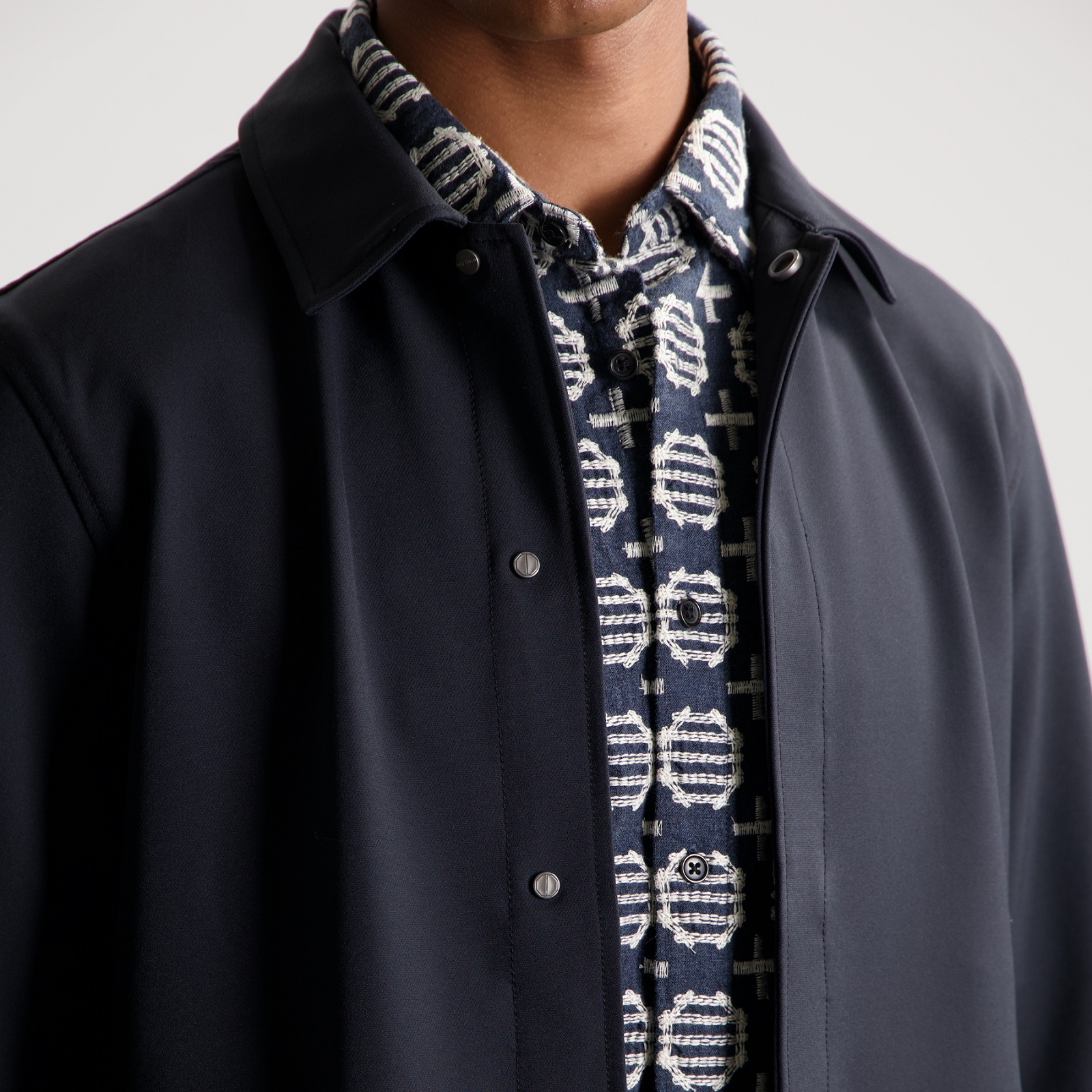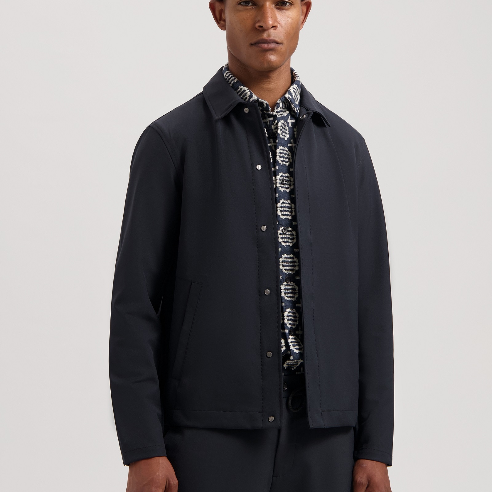 Water-resistant stretch fabric. Dome fastening front. Slant side pockets.