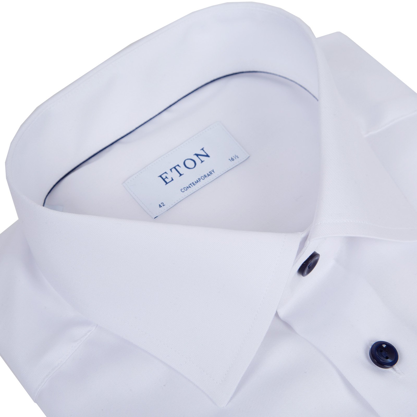 Eton 'Contemporary Fit' is a more generous fit, with more room through the shoulders and chest than the 'Slim Fit' shirt.