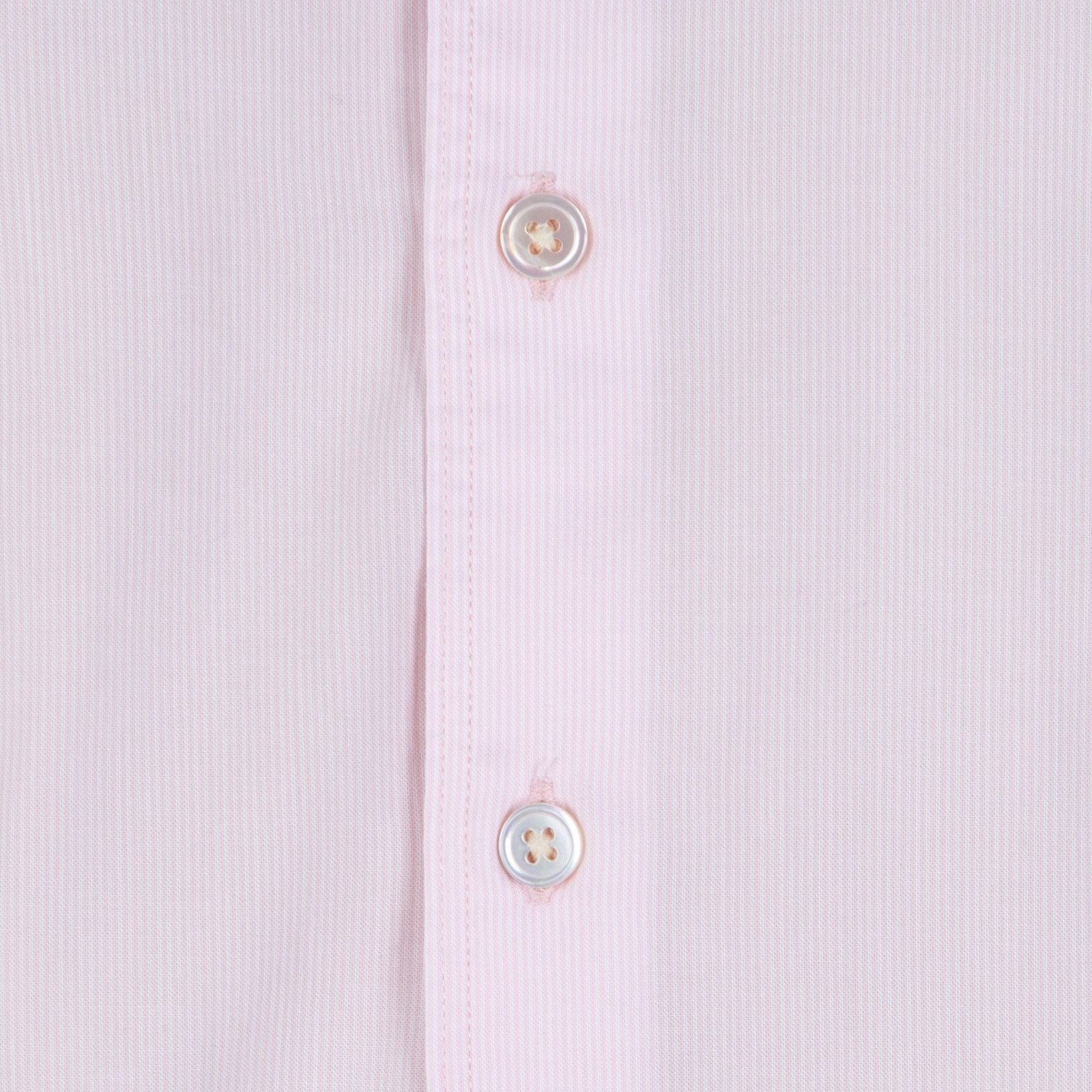 A tapered fit casual shirt in a soft cotton in a fine stripe, with subtle trim detail. Features darts in the back for a tapered fit, and soft fashion under-button down collar.