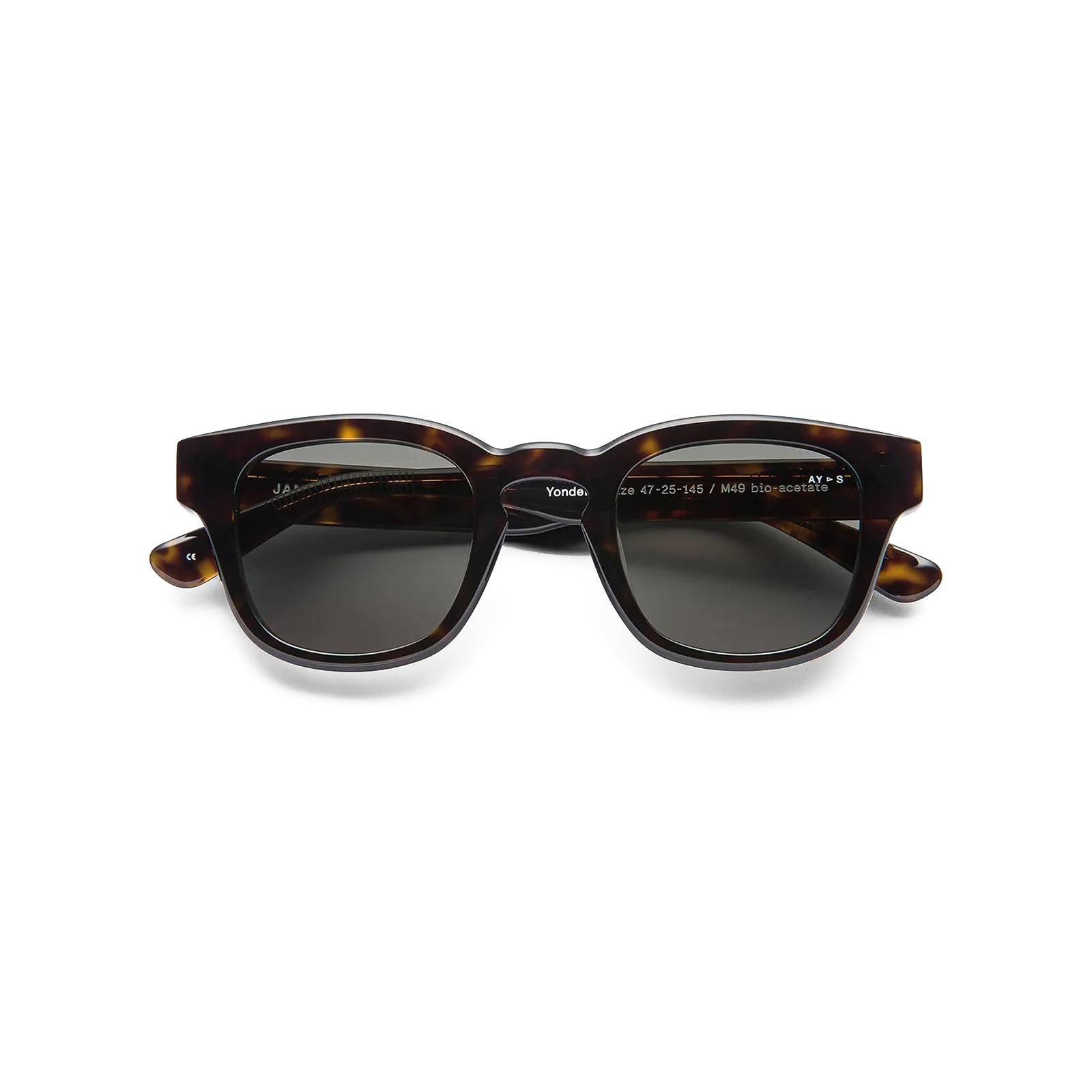 The sunglasses are made from plant-based acetate from Mazzucchelli in Italy. The hinges are from OBE with a special rubber coating, making the friction and longevity perfect. The hinges are made from up to 60% of reused metal chips from old hinges. The sun lenses are Columbia Resin 39 (CR39) with an anti-reflection coating on the inside and a special UV filter with protection up to 400 nm and an index of 1.5.