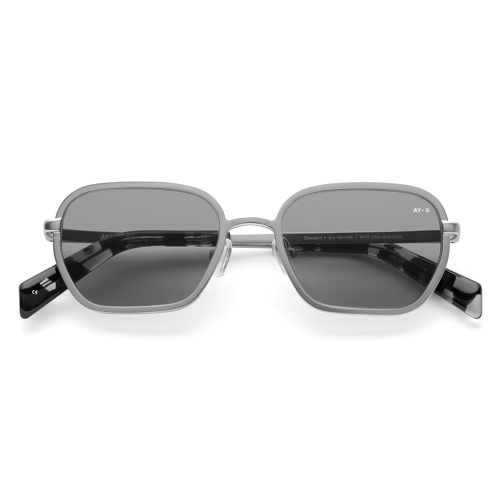 Danish-designed sunglasses handcrafted from metal, with up to 60% reused OBE hinges and fully UV-protected CR-39 sun lenses with an anti-reflection coating on the inside. They come in a box, with a spectacles pouch and cleaning cloth, all made from recycled materials.