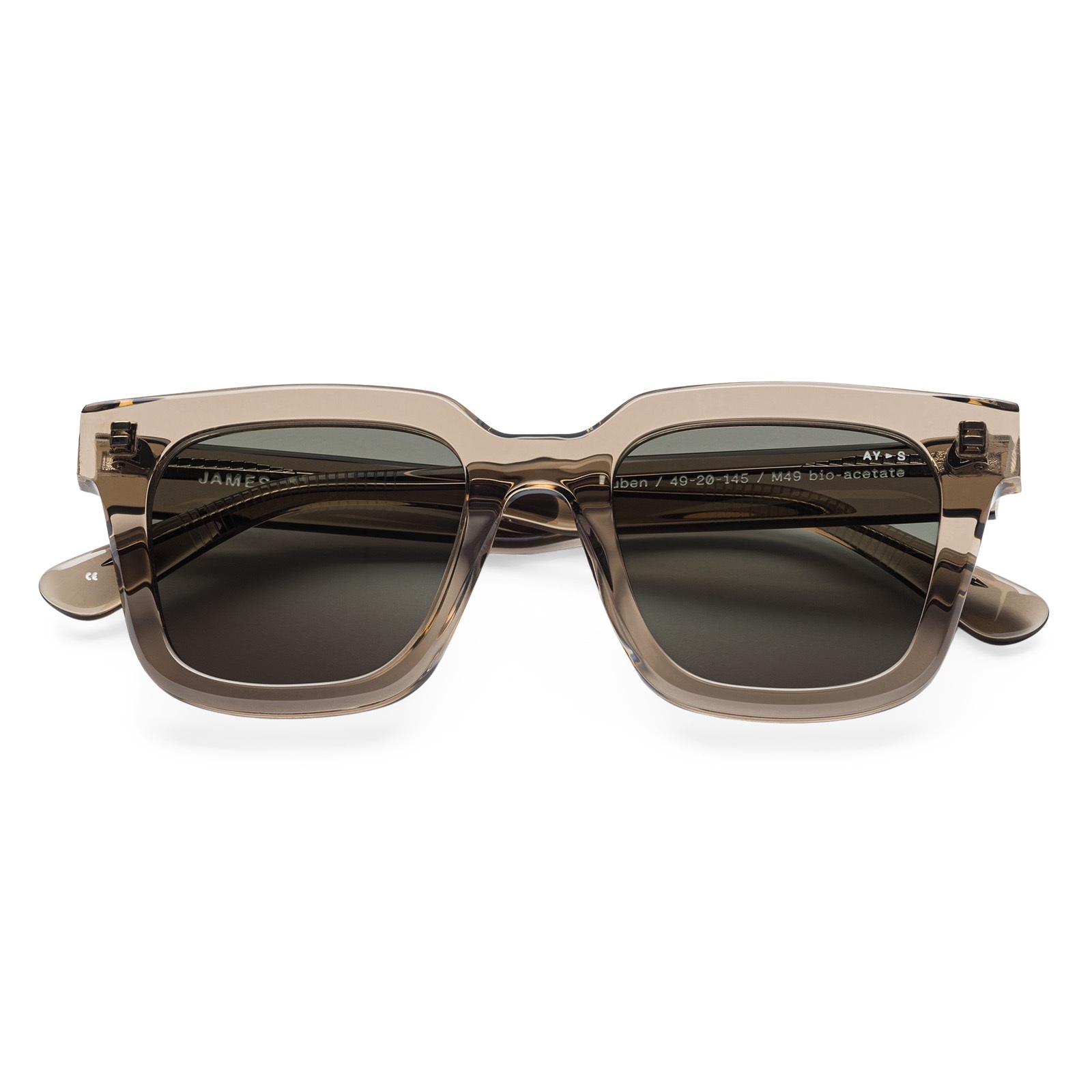 The sunglasses are made from plant-based acetate from Mazzucchelli in Italy. The hinges are from OBE with a special rubber coating, making the friction and longevity perfect. The hinges are made from up to 60% of reused metal chips from old hinges. The sun lenses are Columbia Resin 39 (CR39) with an anti-reflection coating on the inside and a special UV filter with protection up to 400 nm and an index of 1.5.