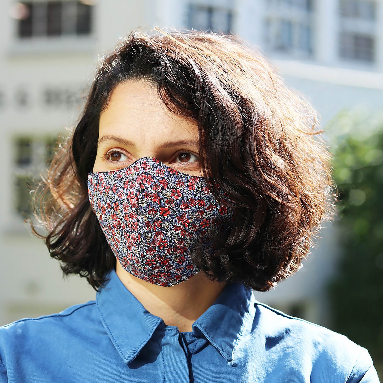 Stay safe and wear something unique with this colourful "Coral Camo" print fine Liberty cotton and super-fine Merino wool face masks. Liberty Egyptian cottons are globally regarded as the finest quality in the world with designs renowned for their fine detail, intricate pattern and original colour palettes. The uniquely woven super-fine 100% merino wool lining delivers the ultimate in comfort. With its superior wicking properties, moisture is drawn away from the face.