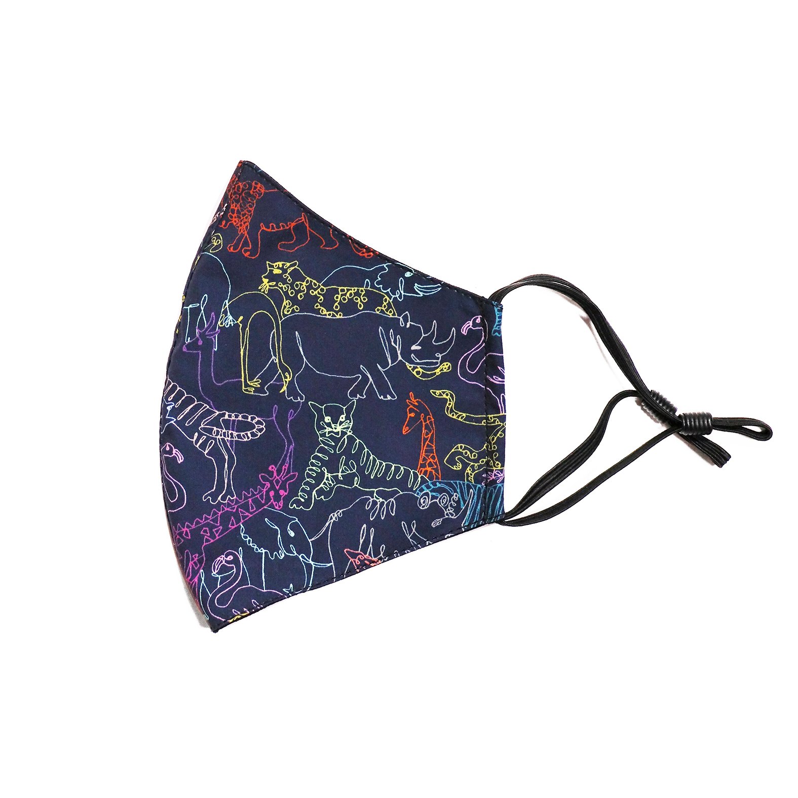Keep your kid's safe with this fun "Neon Safari" print fine Liberty cotton and super-fine Merino wool face masks. Liberty Egyptian cottons are globally regarded as the finest quality in the world with designs renowned for their fine detail, intricate pattern and original colour palettes. The uniquely woven super-fine 100% merino wool lining delivers the ultimate in comfort. With its superior wicking properties, moisture is drawn away from the face.