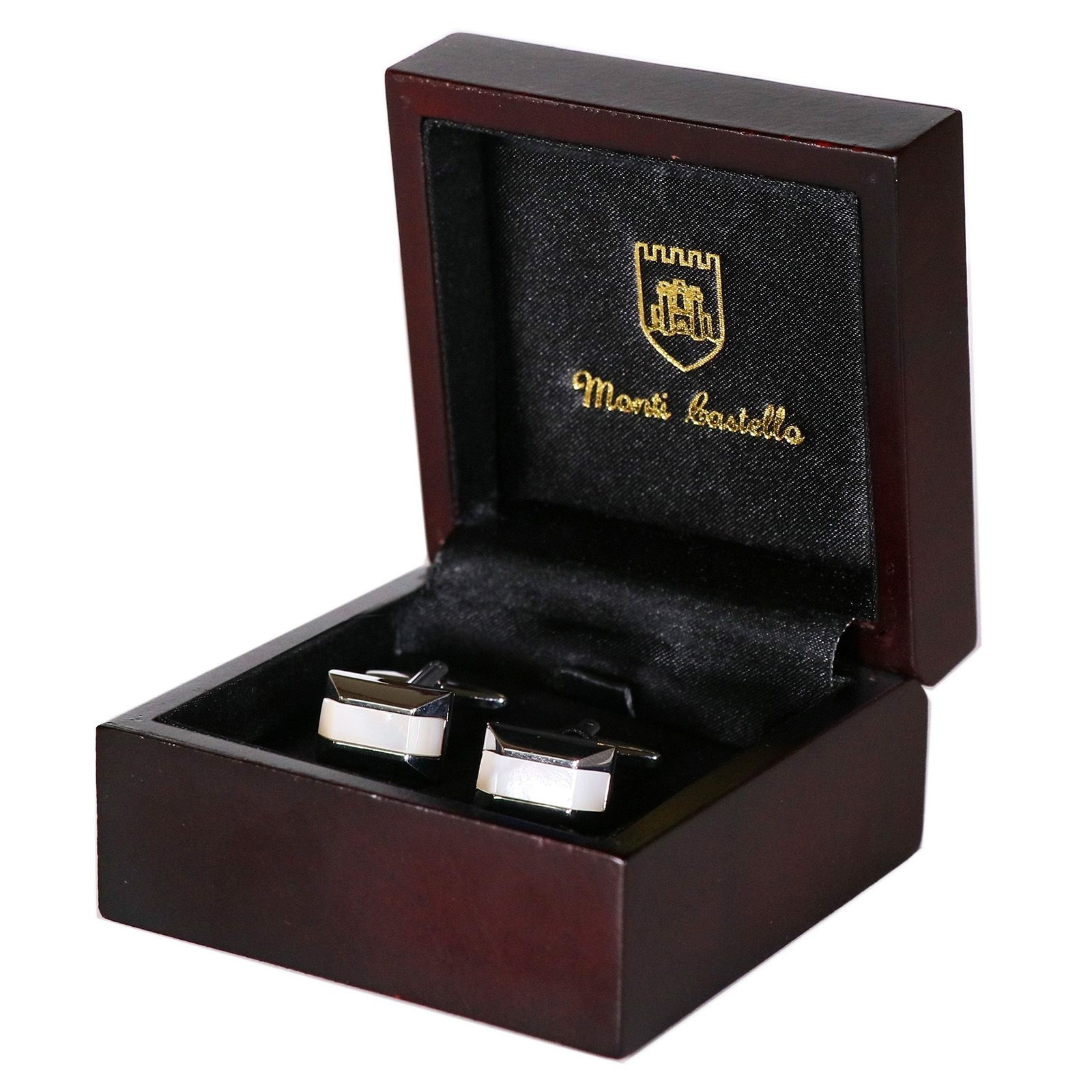These simple cufflinks feature a Mother of Pearl inlay set in a pyriamid shape. Add a bit of personality to your business shirt. The perfect little Christmas gift.