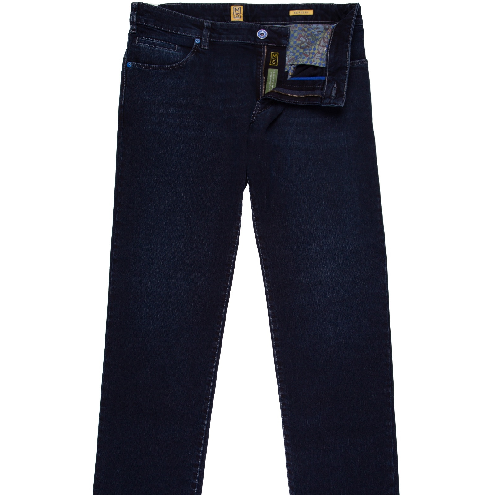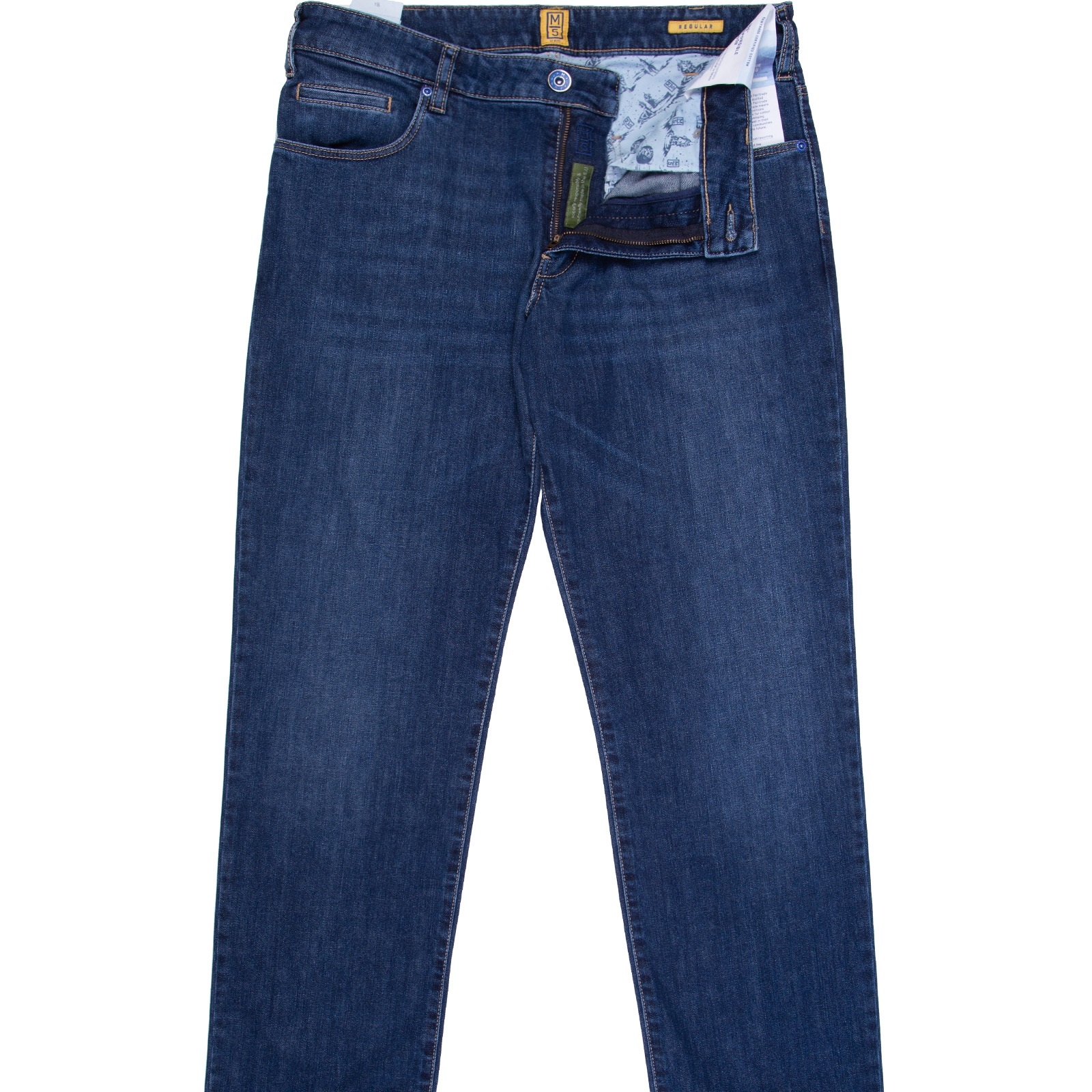 These soft medium weight stretch 'Fair Trade' denim jeans are an everyday essential in your wardrobe. Wear them casually with a coloured polo and sneakers, or dress them up with a blazer, smart shirt and boots. Features a secret zip-up security pocket.