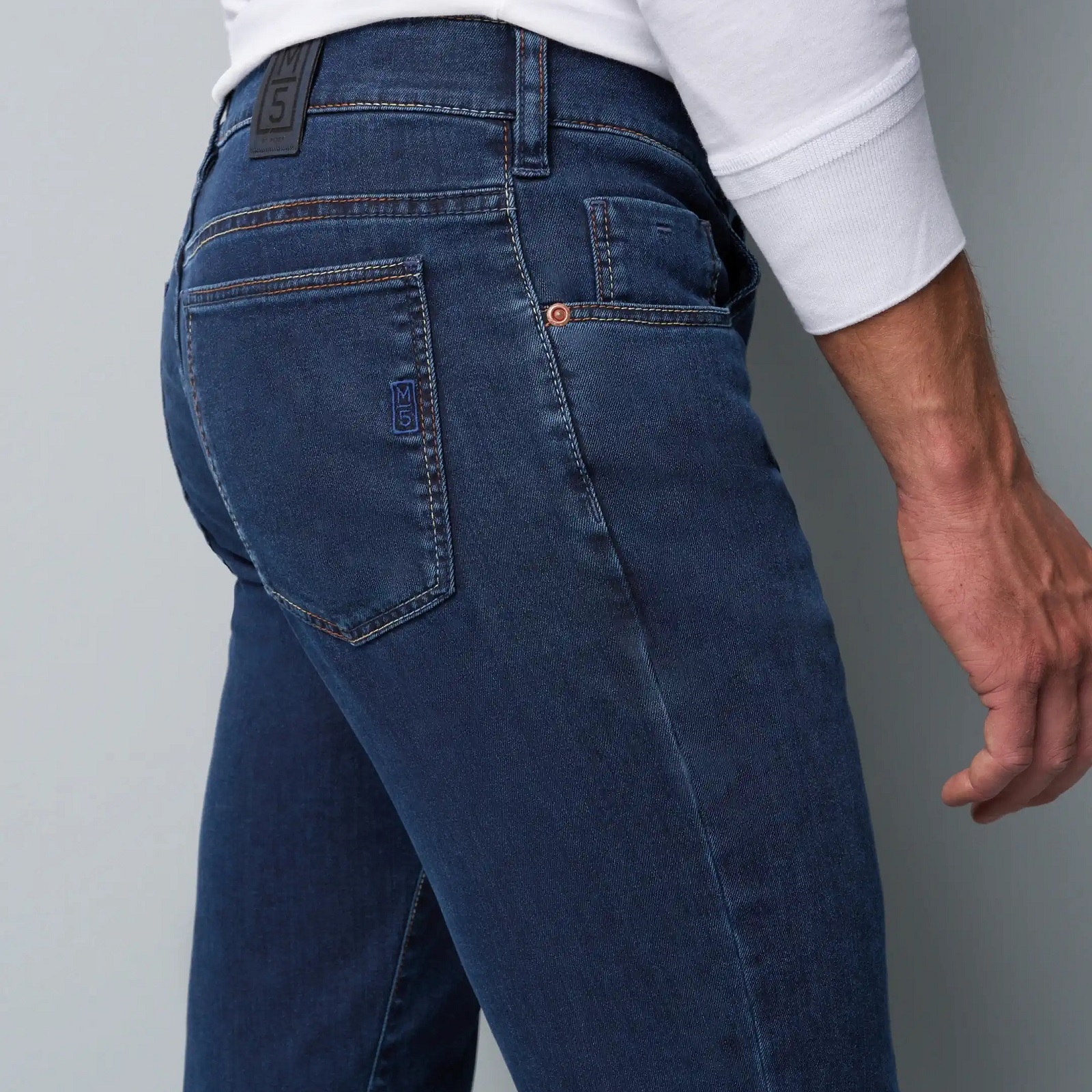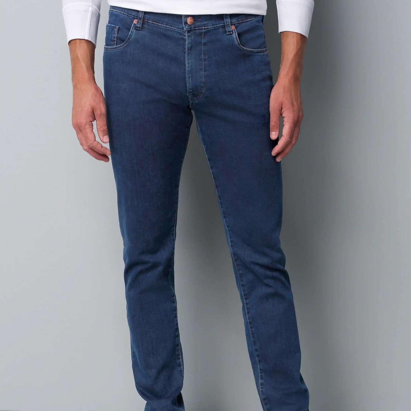 These soft light-weight super stretch denim jeans are an everyday essential in your wardrobe, featuring multi-coloured stitching detail. Wear them casually with a coloured polo and sneakers, or dress them up with a blazer, smart shirt and suede brogues. Features a secret zip-up security pocket.