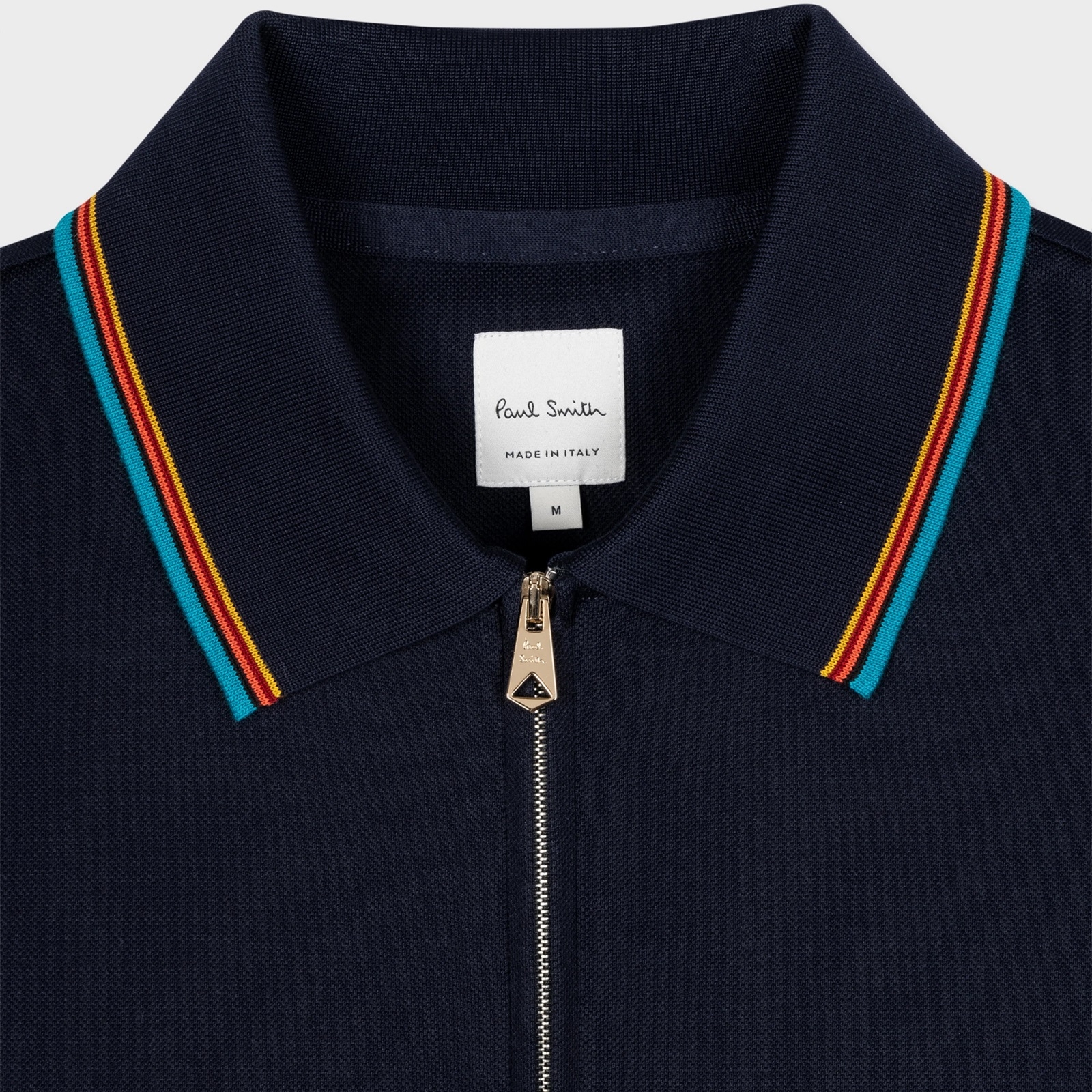 Made in Italy from 100% soft cotton-pique, this dark navy polo shirt features a contrasting 'Signature Stripe' collar and sleeves, complete with a zip neck fastening. An updated look on a timeless silhouette, this polo shirt can elevate your smart causal look to take it from day-to-night with the addition of complimentary tailoring.