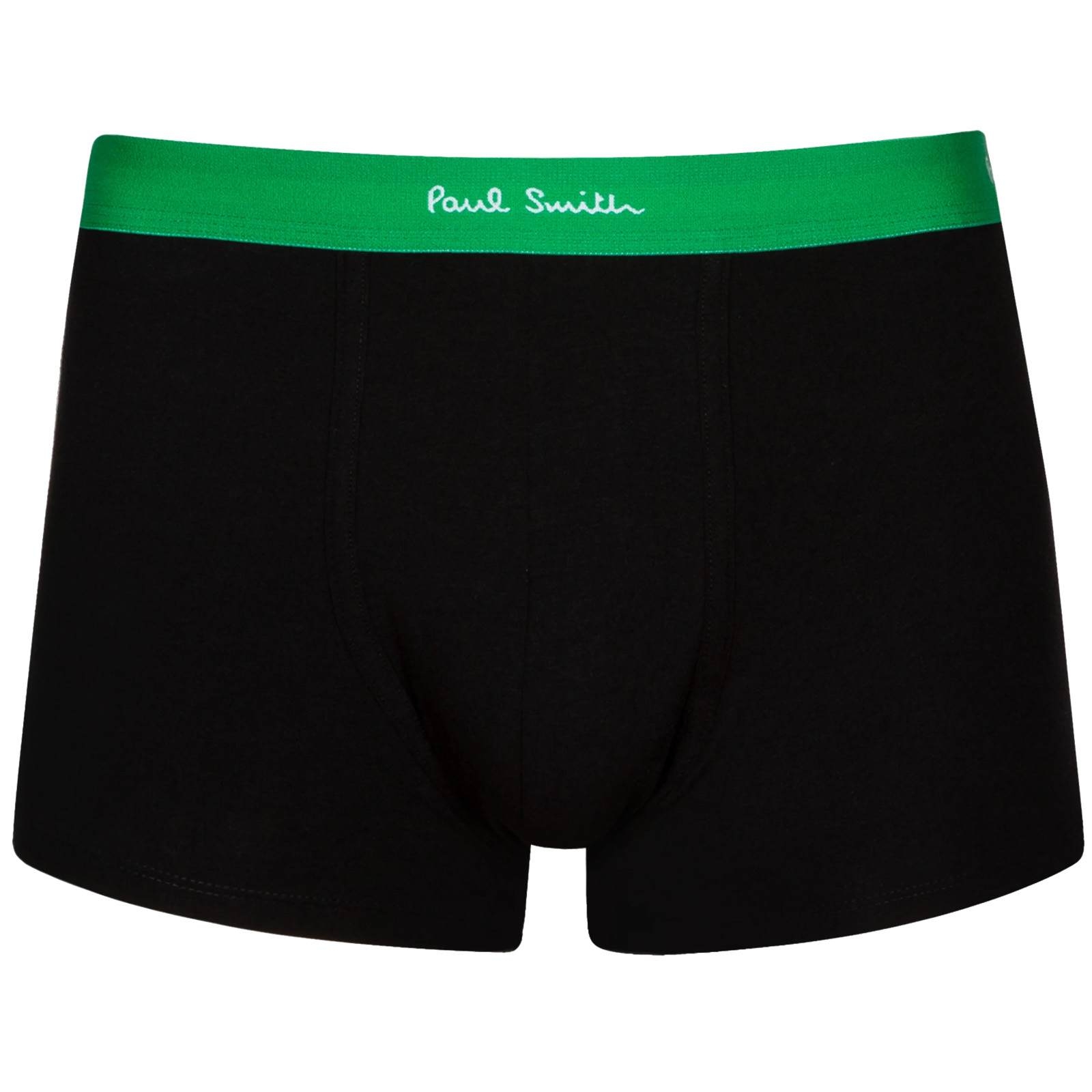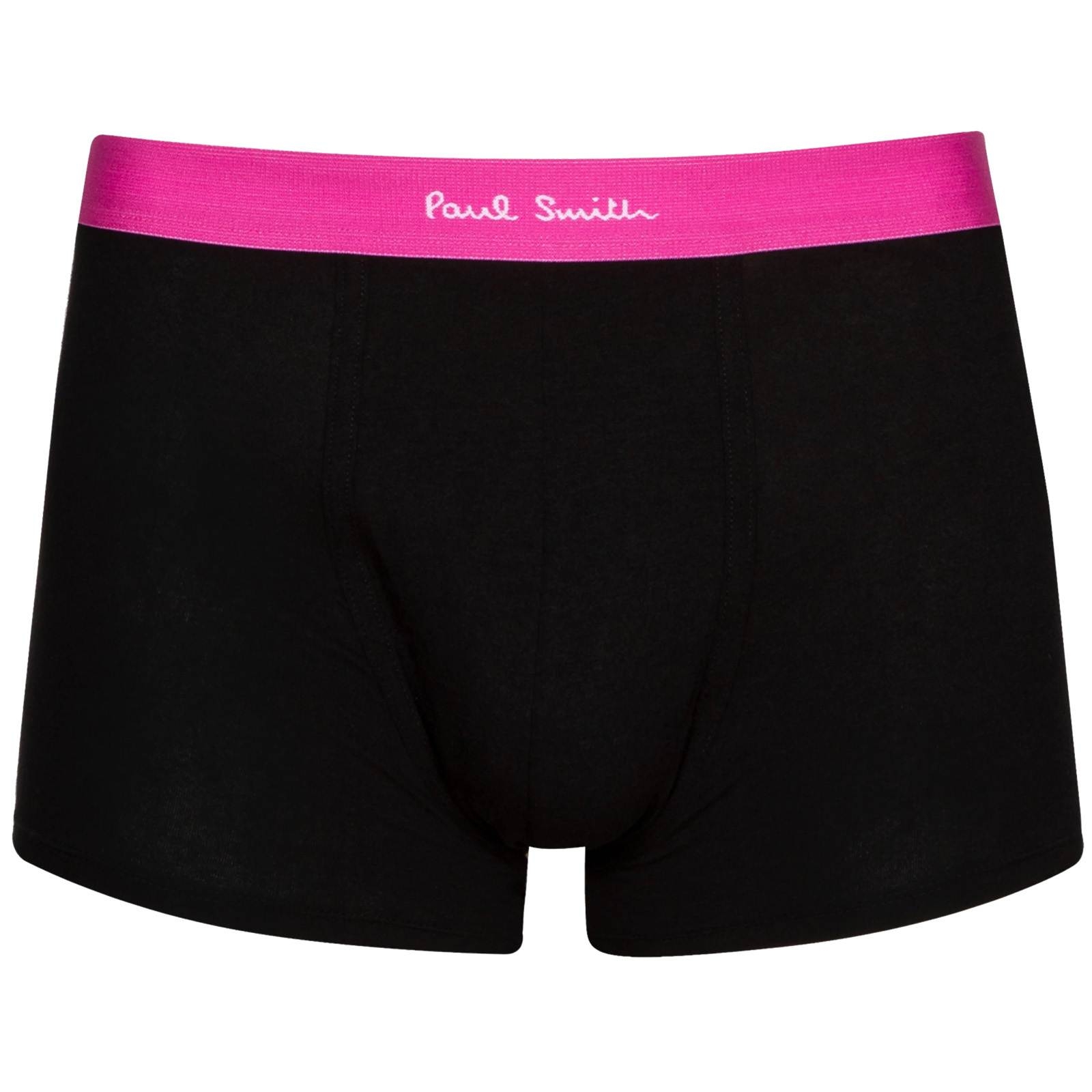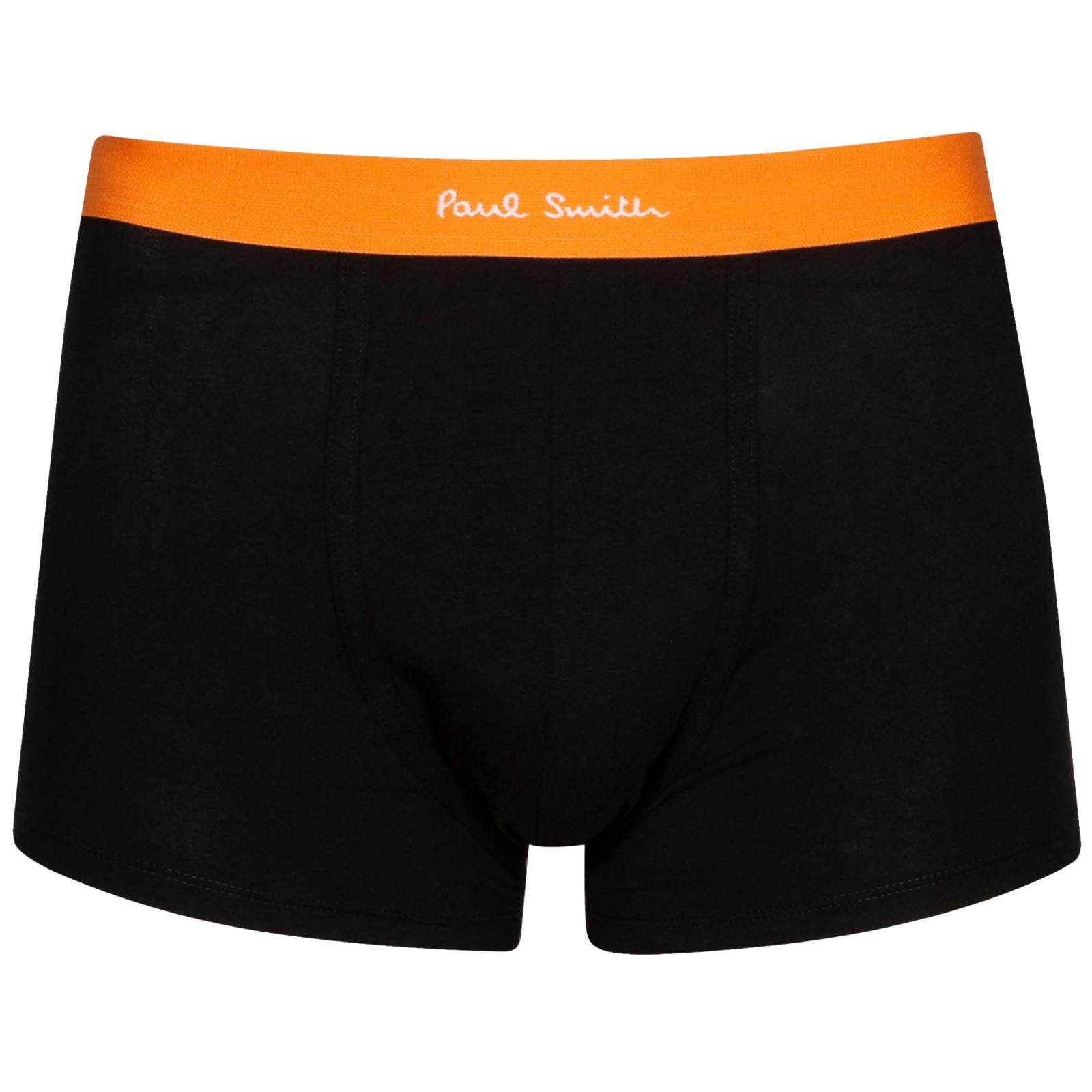 Pack of 7 low rise boxer trunks in plain black with different brightly coloured waistbands. Slim Paul Smith waistband.