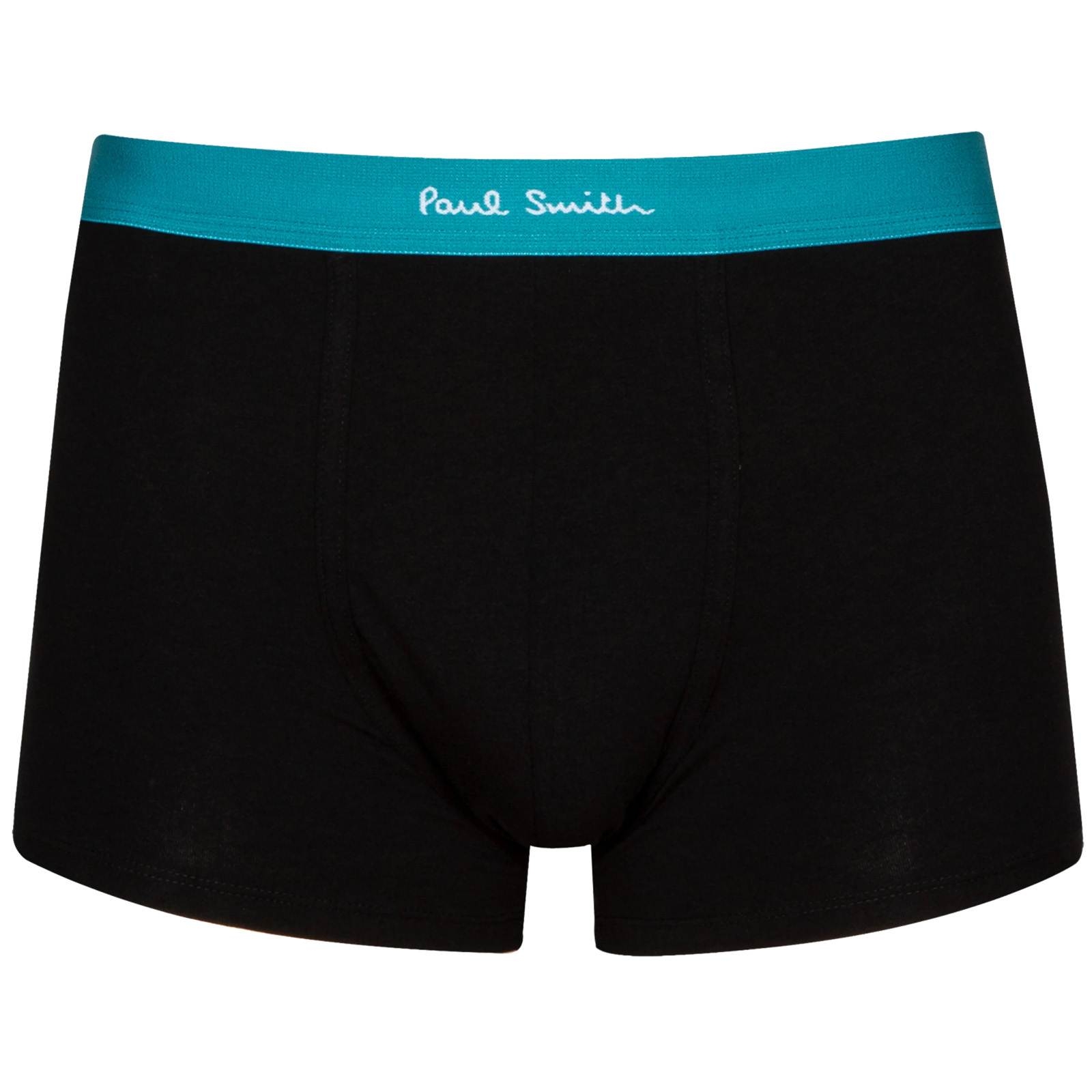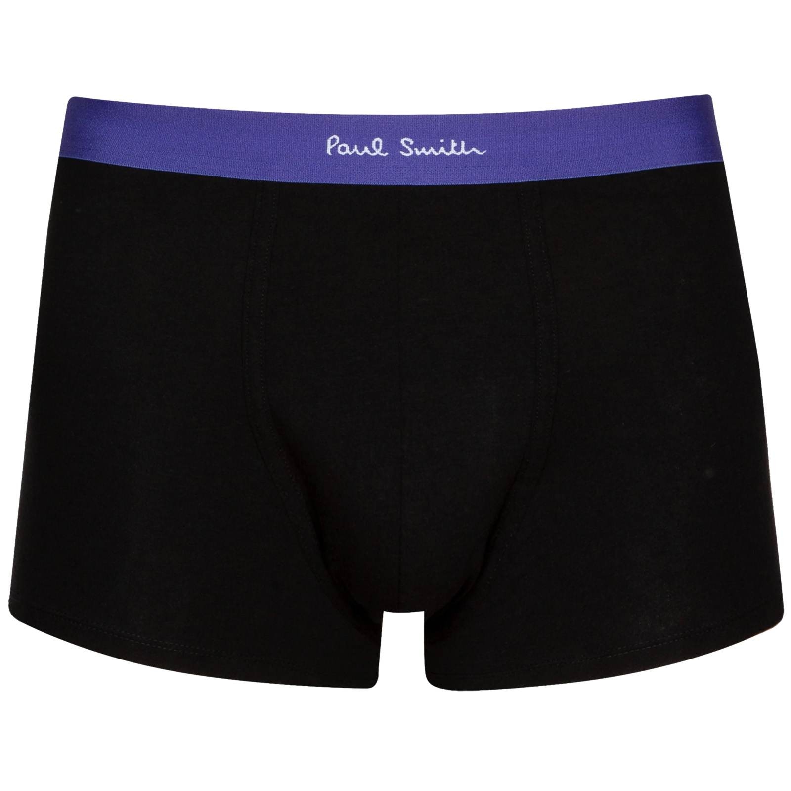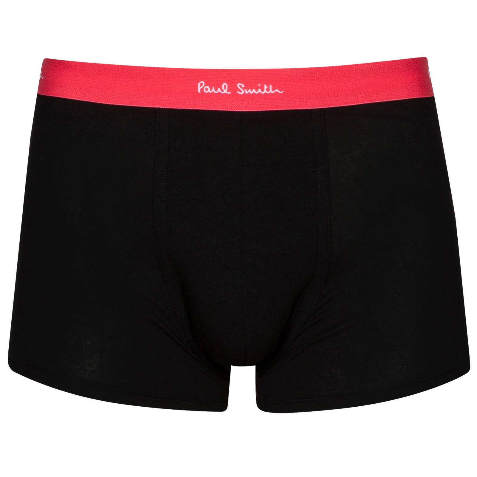 Pack of 7 low rise boxer trunks in plain black with different brightly coloured waistbands. Slim Paul Smith waistband.