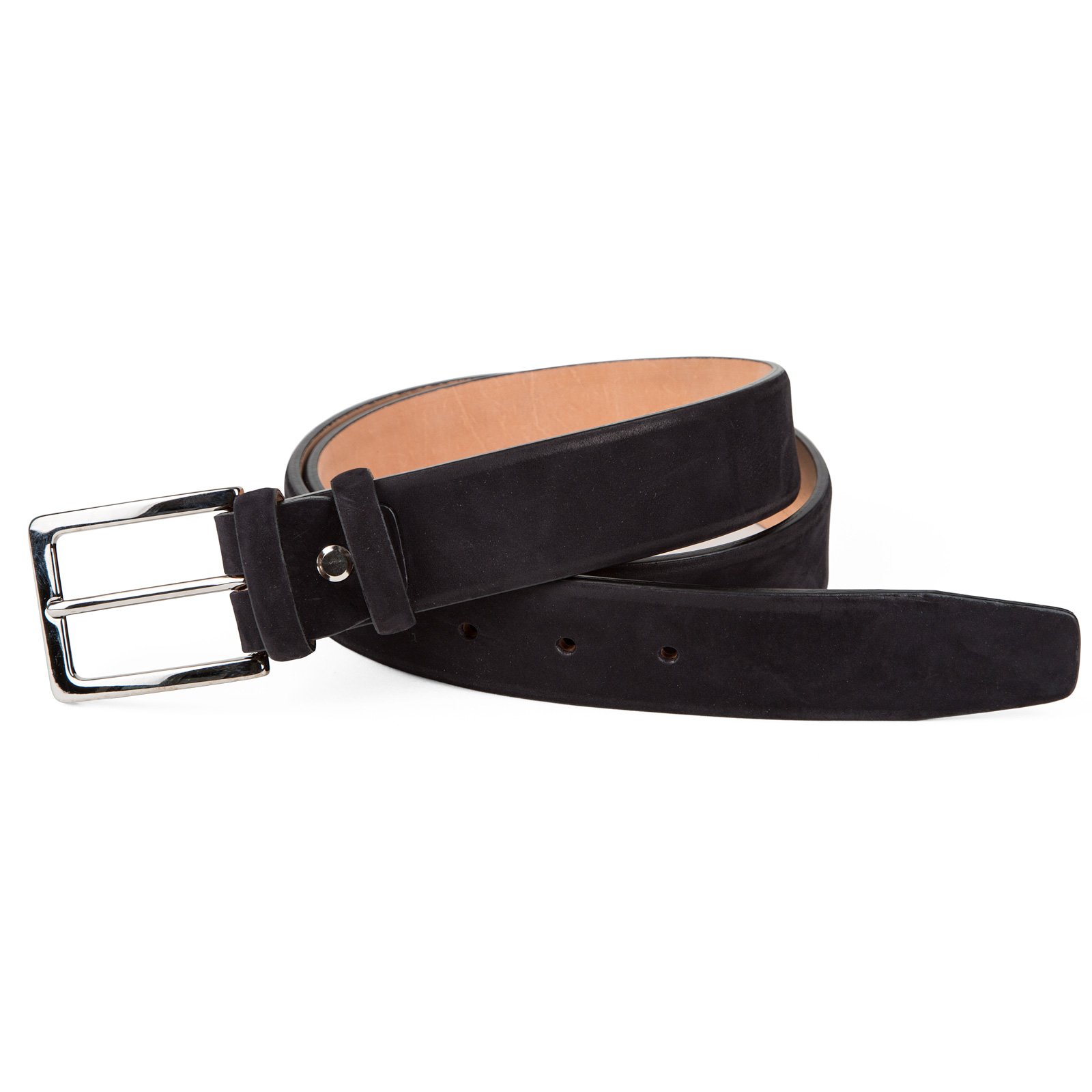 Luxury hand made leather nubuck dress belt with a clean feather edge. Wear with jeans and a pair of suede brogue shoes.