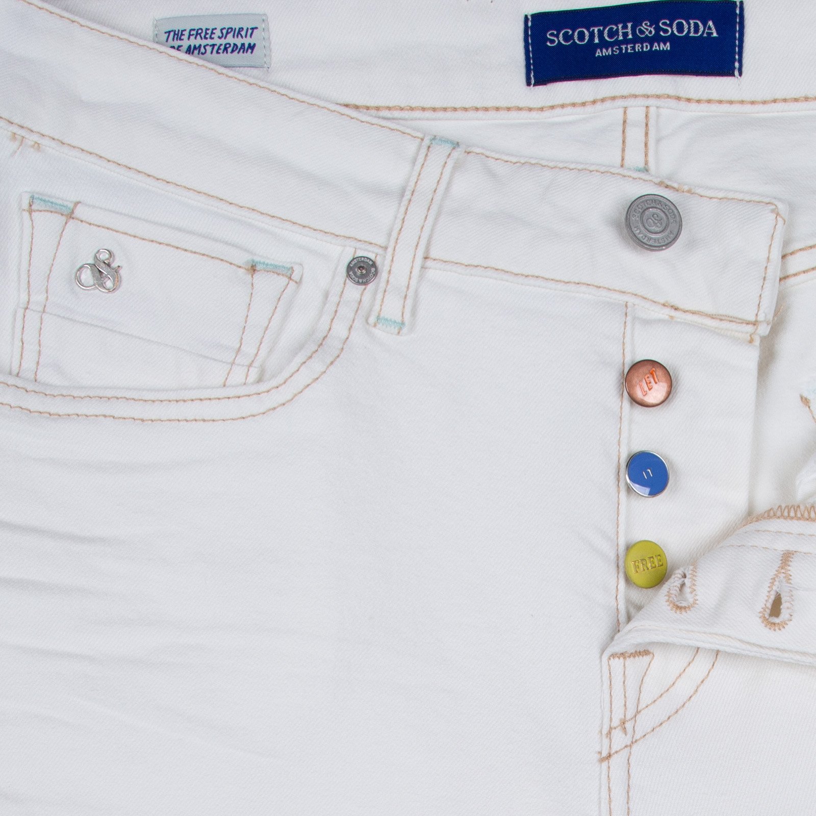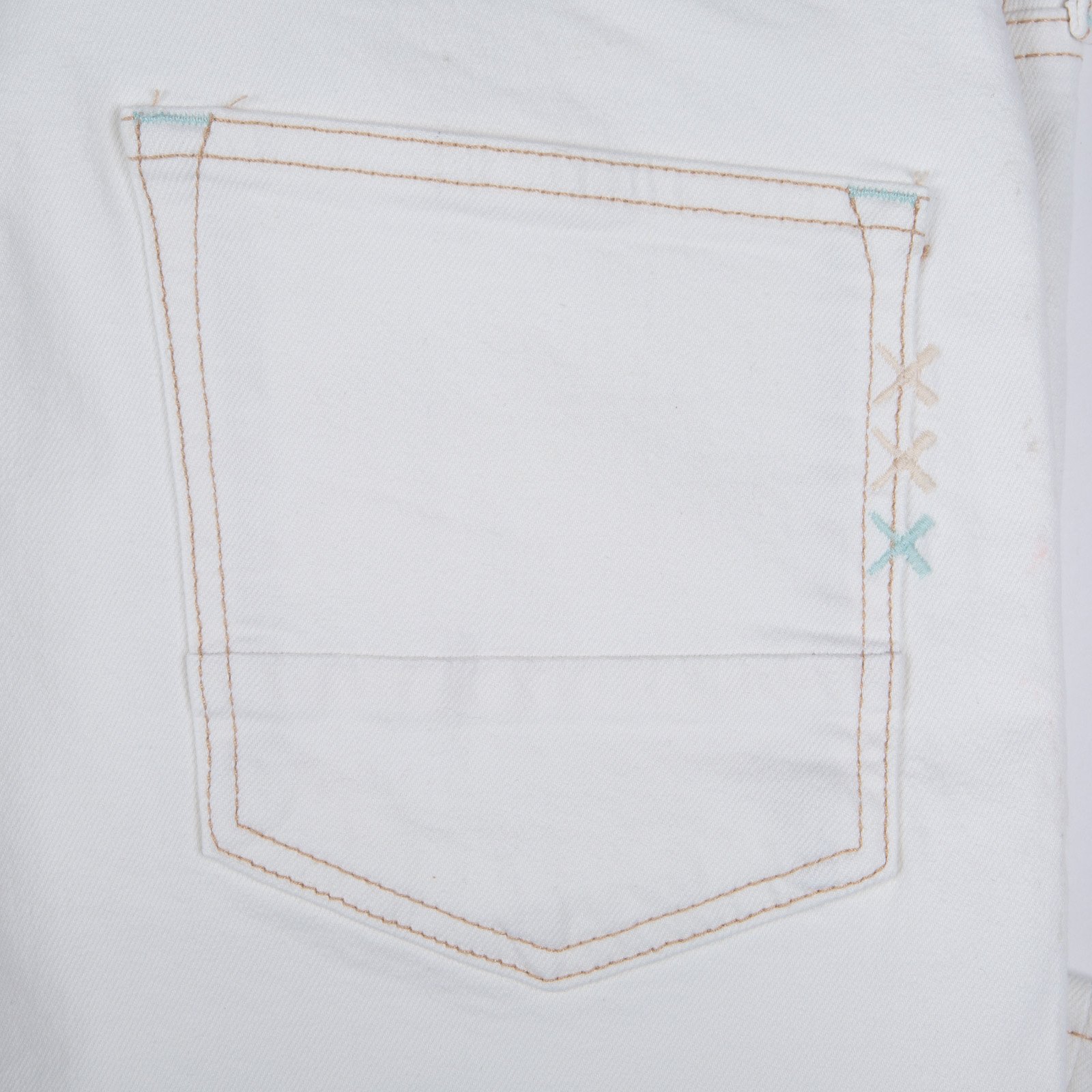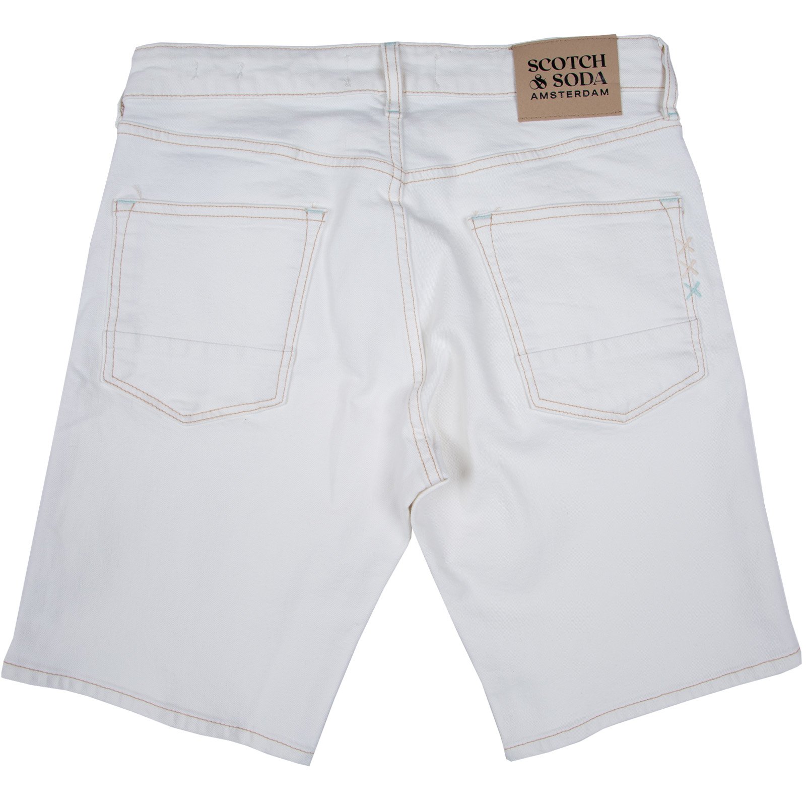 Crafted in off-white stretch denim, these regular slim fit denim shorts are made for Summer.